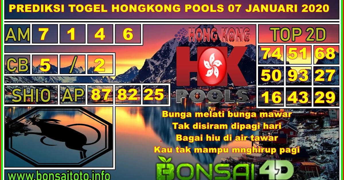 PREDIKSI TOGEL HONGKONG POOLS 07 JANUARI 2020